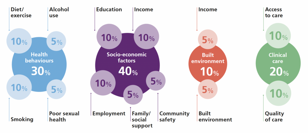 Only 20% of our health is affected by health services. The remaining 80% is caused by the wider determinants of health.